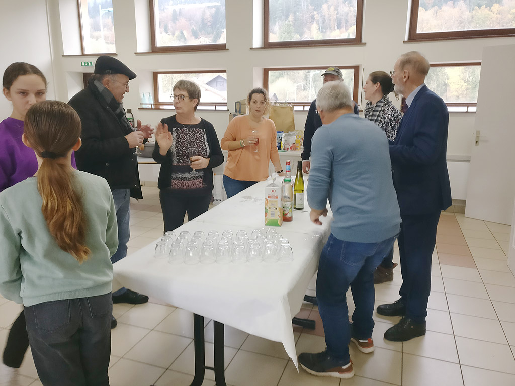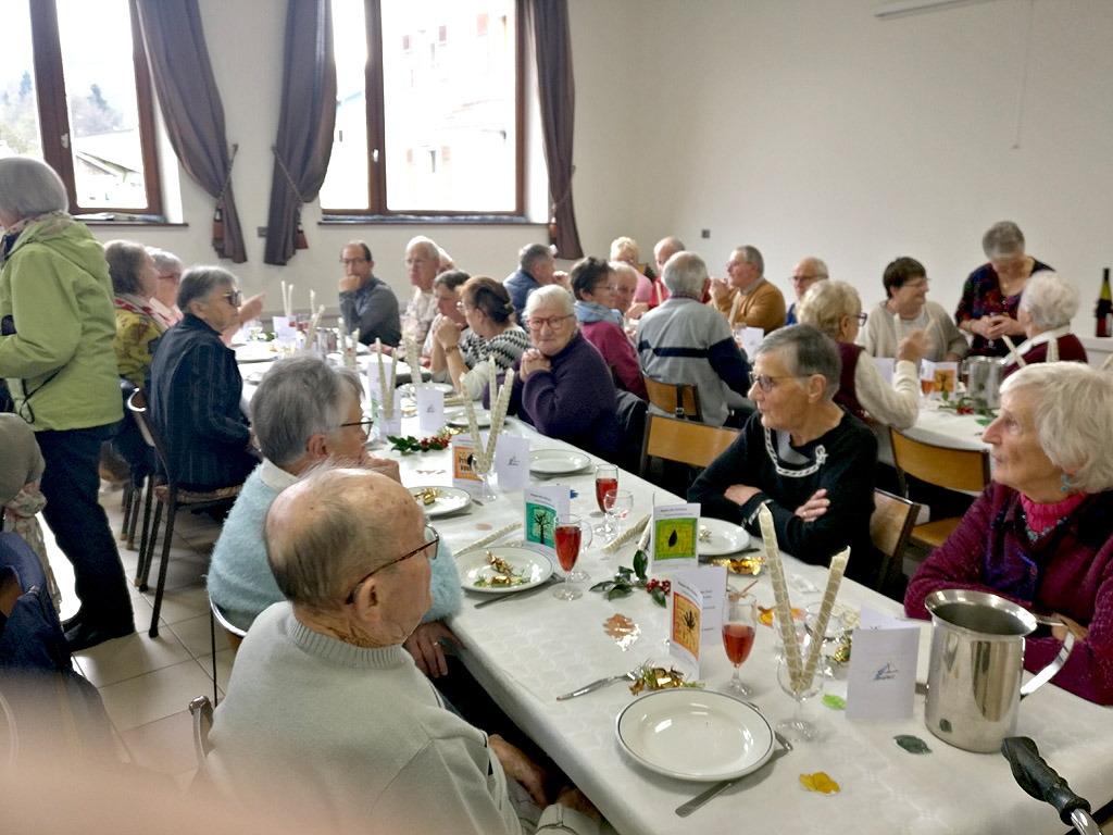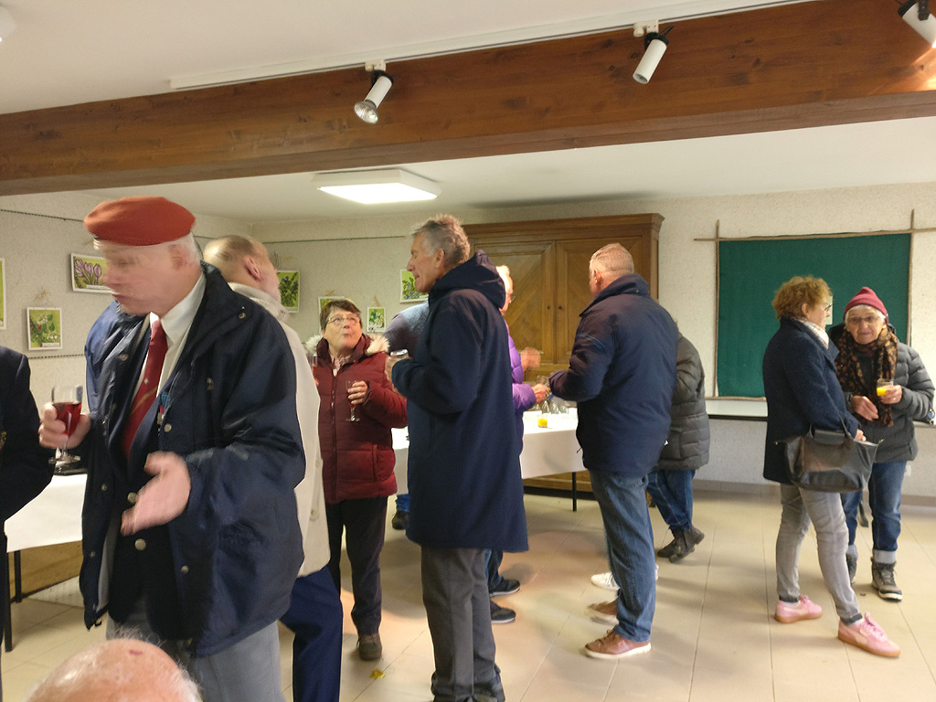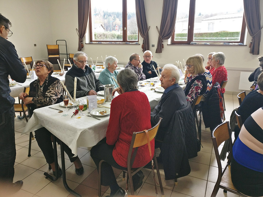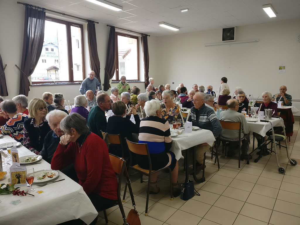 Le temps invitait à rester au chaud ! …. Les anciens étaient nombreux pour se retrouver dans l’ambiance chaleureuse de la salle de Sapois où après l’accueil de notre Maire, Monsieur Meyer, fut servi l’apéritif et le repas. (Salade composée, bouchée à la reine, riz pilaf, fromage, salade, crème renversée et cake aux brimbelles, suivi du café ou infusion.